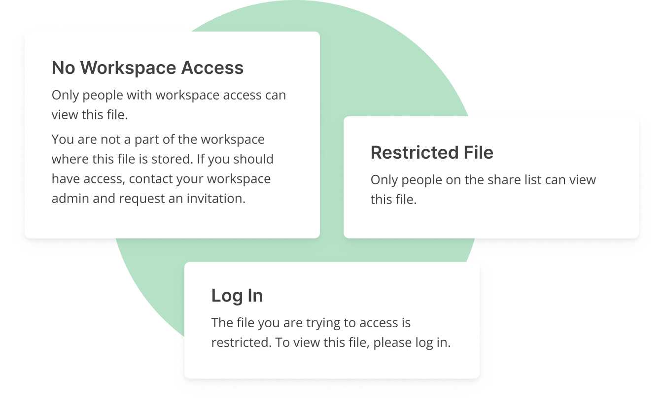 Now that users could set file permissions, it was essential to inform users whether the file was restricted to the workspace or share list users. The team and I determined that the message they received depended on the users’ logged-in status.