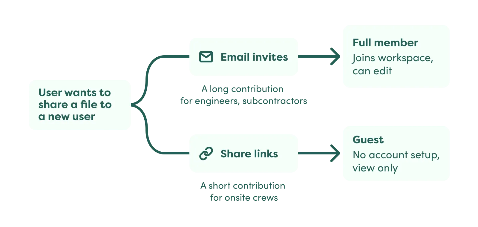 With these variables, two primary sharing methods emerged to support both lightweight access and structured collaboration: