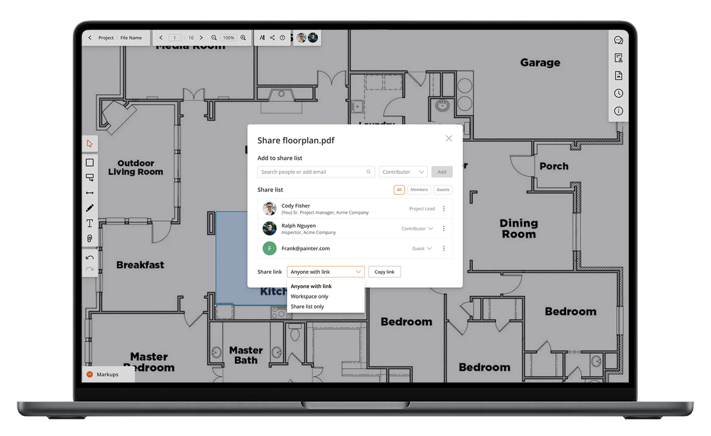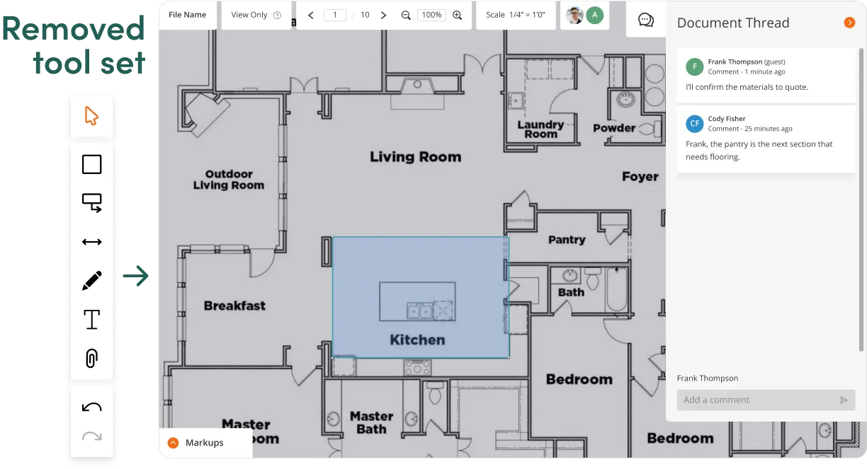 Guests were external users who needed document context without full editing access. They required visibility into scale, measurements, and existing markups, but not the complete toolset reserved for ActiveDraft members.