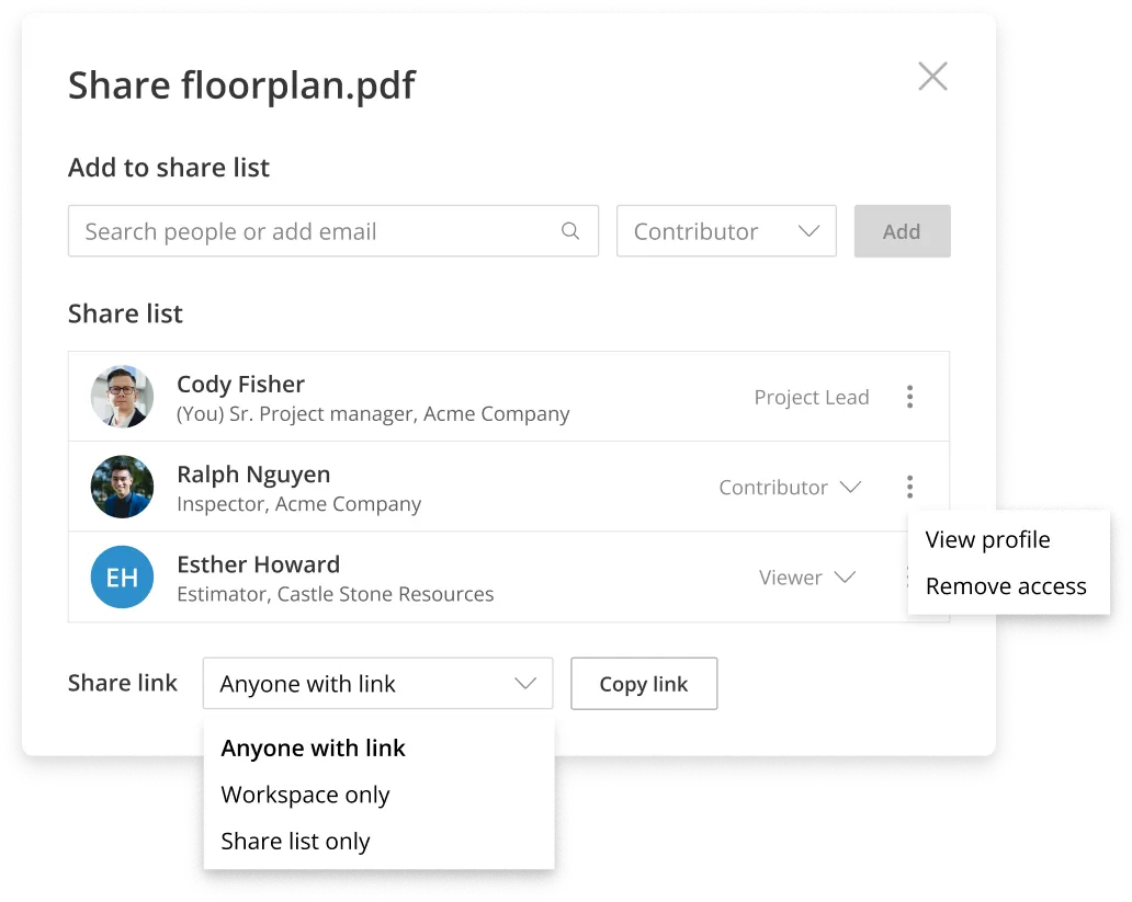 • Anyone with link: View-only access for ActiveDraft users or external guests.